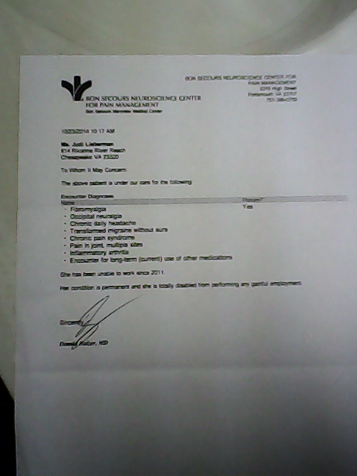 After exhausting every available avenue for financial support, I created a YouCaring page. I was and am still horribly embarrassed to have had to go to the extreme of what I consider begging. I don’t understand how I got to where I am now. I have worked full-time since my late teens after I graduated high school. As the years went by, I made more money and had better benefits. By the time I got into the dental field in my early 20’s, I knew this was the career for me. Over the years, I moved up from receptionist, to chairside assistant, to front desk manager, to practice manager. I loved my job, my doctors, and my responsibilities. When the migraines started, I was getting them pretty infrequently, maybe once a month. As they became more regular, I saw my doctor. He prescribed Fiorinal, which is notorious for causing rebound headaches. I wasn’t aware at the time, and my doctor was not well read in the treatment of migraines and assumed they were stress-related. I did some research of my own and went back to see the doctor. He referred me to a migraine specialist. After trying many of the drugs that I previously listed in this blog, he referred me to pain management. In between, I had tried chiropractic, acupuncture, biofeedback, and many supplements. In 2011, the migraines had progressed to daily or Intractable and I couldn’t work anymore. I saw a rheumatologist, who diagnosed Fibromyalgia in addition to the chronic daily migraines. This explained my severe body aches, exhaustion, and insomnia, which I thought were all triggered by the migraines. I’m in pain management now and no medications have worked so far. I filed for SSI Disability benefits in 2011. After 9 months, I was denied. I hired a lawyer and after another year, was denied once again. The lawyer appealed again and I was informed that in my state of Virginia, there was a 12-16 month wait for an appeal hearing in front of a judge. It has been 5 months now. I have depleted my retirement savings, sold my car, and moved in with my mother. I cannot get Medicaid until SSI is approved, which is ridiculous! Once approved, I can get both Benefits, but until then, nothing. Where is the sense in this?! Medicaid should be the bridge benefit between unemployment benefits ending and SSI starting. I have NO source of income. No family except for my mother, who is on a fixed income. I have lost my friends due to this situation and have no other support. Meanwhile, the cheapest medical insurance I can get through Obamacare is $475.00 per month with a $750.00 deductible plus co-pays. My medical bills are through the roof and I’m being harassed by collection agencies. This is in addition to my other bills and living expenses. I may need to declare bankruptcy, but I don’t want to ruin my credit. I have to think positively that I will be able to get a handle on these illnesses and be pain-free enough to work at least part time. So, that’s my situation. I’m depressed, have frequent panic attacks, and many side effects from all the medications I’m taking. Just when I thought my life couldn’t get any worse, I’m now begging strangers for help. The thing is, as quickly as my life spiraled out of control, it could have been any one of you in the same situation. Yes, I need help! And when I was in a position to do so for others, I did. I believe in Karma. What goes around, comes back around. I have nothing left to believe in. Bless y’all for reading.